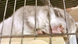 足を庇って歩いたり、うまく歩けない状態は異常サインです。若い個体ではメッシュ床で後肢骨折が起こることもあり、外傷の見逃しに注意が必要です。